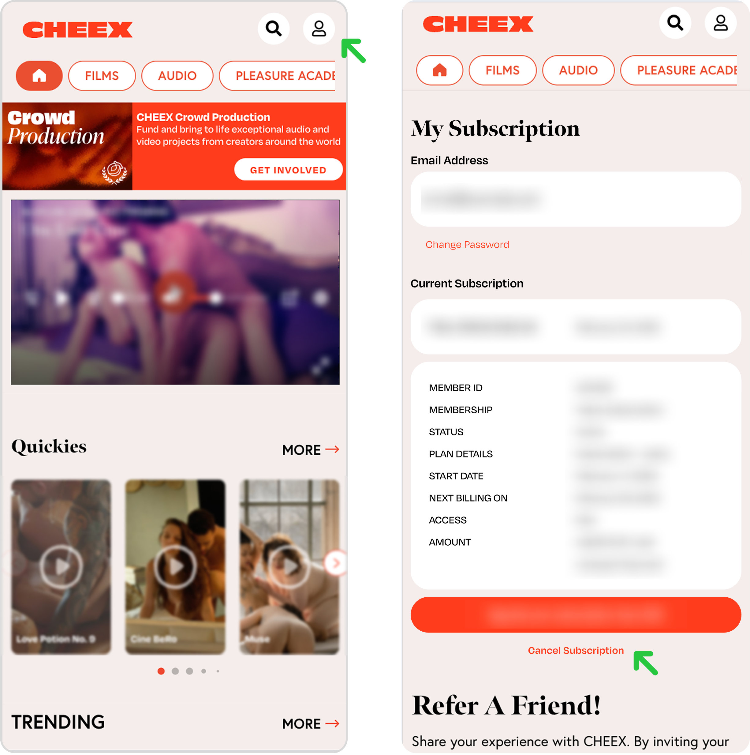 • You can check your subscription status and details on your account page after you have entered your password.
